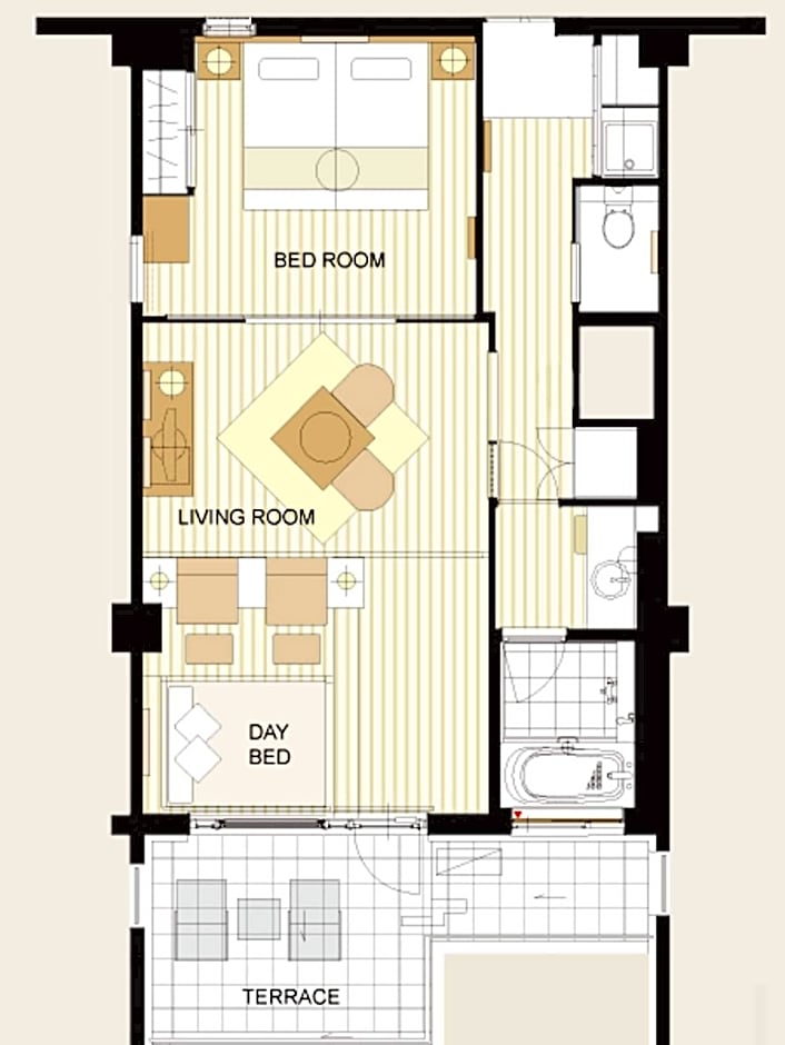Features modern Asian decors. Comes with high ceilings and a satellite flat-screen TV. Each has a mini-bar and fridge, and free internet is provided. The private bathroom includes a bathtub.